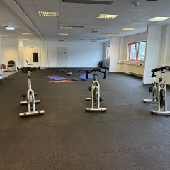 Die Fitnessmatte GZ ist hochverdichtet und vielseitig einsetzbar, z.B. für Cycling- und Cardiobereiche, Umkleiden und Lounges.