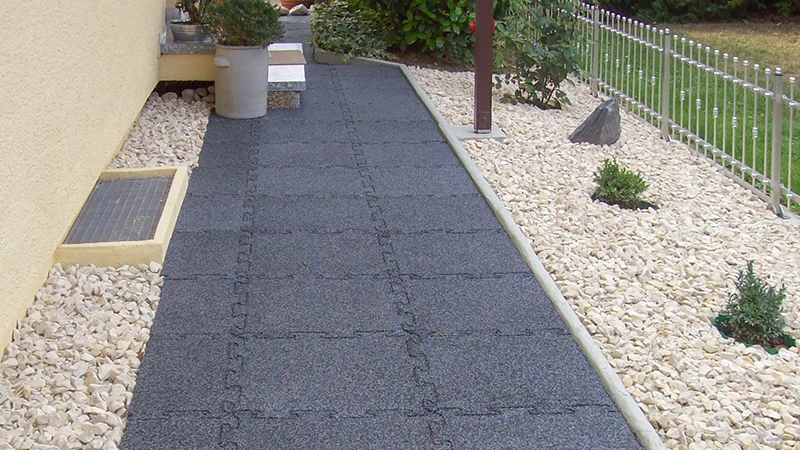 Mit Gehwegplatten aus PU-gebundenem Gummigranulat von WARCO schaffen Sie dauerhafte, witterungsbeständige Wege, die sich leicht verlegen lassen und angenehm zu begehen sind – ob barfuß, in Gartenschuhen oder auch mit High Heels.