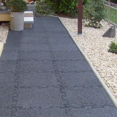 Sì. Le piastrelle in gomma sono naturalmente antiscivolo poiché la struttura fine dei granuli forma una superficie ruvida e sicura – simile al ghiaietto fine. Mantengono la loro sicurezza anche sotto la pioggia. Tuttavia, se foglie bagnate, neve o ghiaccio ricoprono la superficie, non si può garantire l’effetto antiscivolo perché manca il contatto diretto.