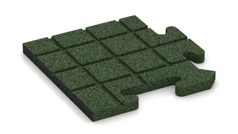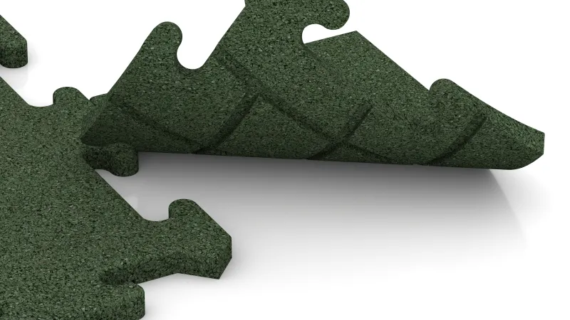 Mit der Eckplatte gelingt ein exakter, gerader Abschluss an den vier Ecken einer Plattenfläche. Jede Platte ist ein Viertel einer ganzen Puzzleplatte: Die Innenseiten verfügen über die vertraute Puzzleverzahnung und lassen sich passgenau mit den übrigen Platten verbinden, während die Außenseiten glatt und gerade verlaufen. So entsteht ein harmonischer und funktionaler Rahmen um die gesamte Fläche.