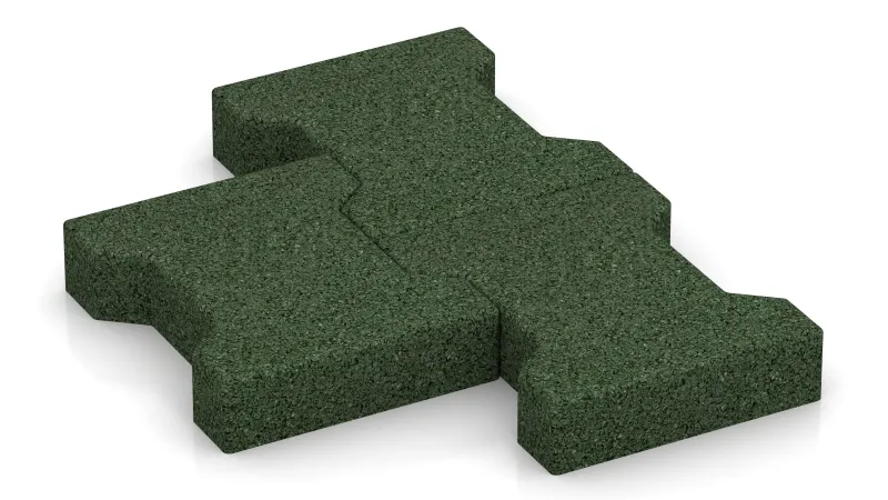Pavé amortissant autobloquant en caoutchouc double T 4,3 cm - EN 1177 ≤ 80 cm VO "Vert gazon"